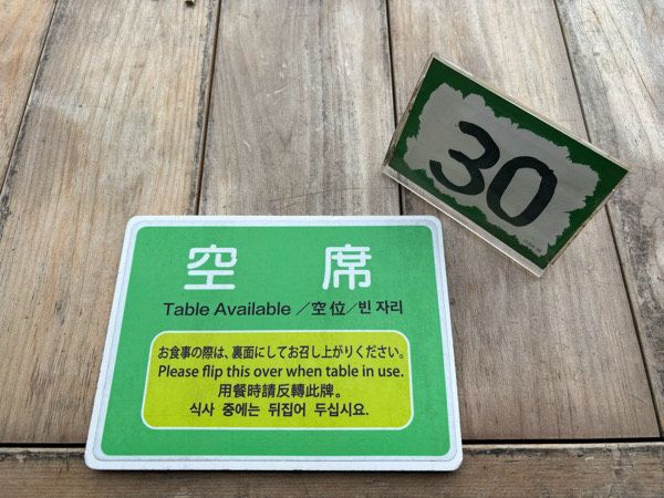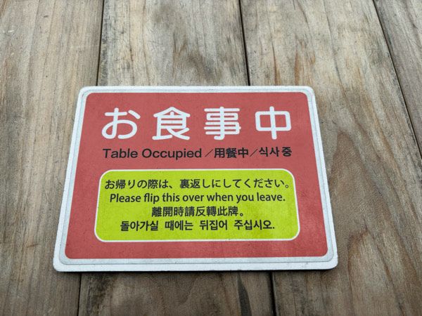 食べ終わり、帰りの際には再びプラカードを裏返しにすると、空席といった文字に。