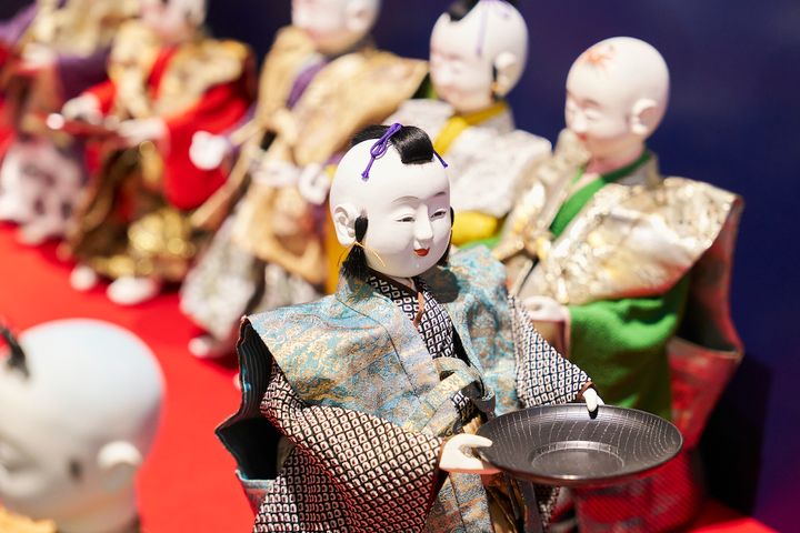江戸時代に豪商がお茶を楽しむために使用していたとされる、ゼンマイ仕掛けの茶運び人形(江戸からくり人形)の展示もあります。着物姿の人形がもつお盆の上に茶碗を置くと、人形が動き出し、茶碗を取ると動きが止まる仕組み。スタッフが実際に動かすこともあるそうです。