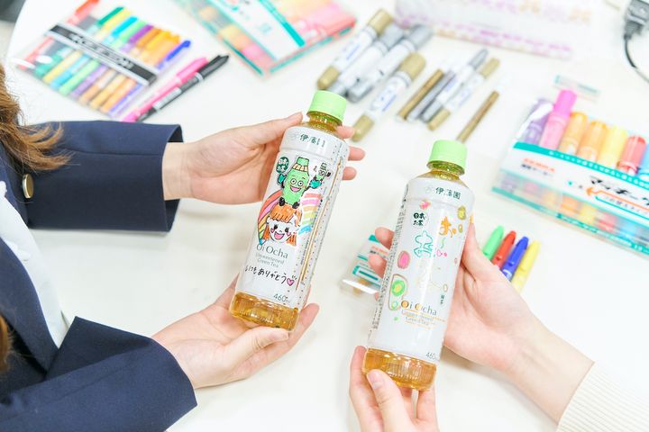 もうひとつの体験は、ラベルに好きな絵柄やメッセージを書いて、自分だけの「お~いお茶」が作れる「オリジナルのお~いお茶づくり」。カラーペンで自由に書いて、ペットボトルに貼ればあっという間にできあがり。来館記念に世界にひとつだけの「お~いお茶」を作ってみませんか。
