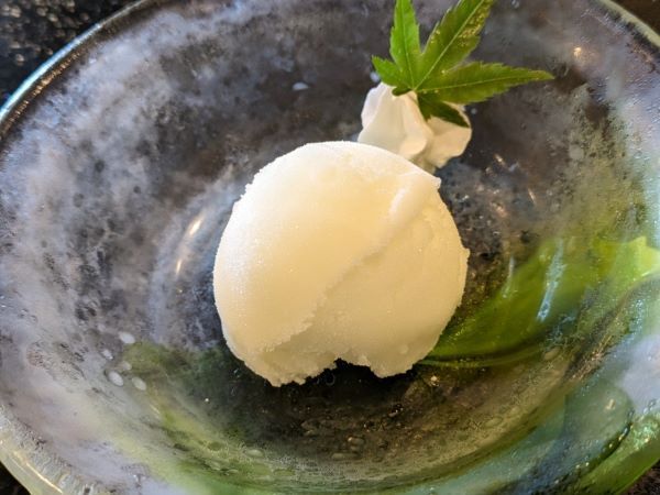 鉄板のオンザライス♪ ご飯がおいしいなら、デザートも美味しいはず!とさっぱり系のスイーツも食べてみることに♪「ゆずシャーベット」はゆずがたっぷり使われている贅沢な味わいで、さっぱりしていながらも濃厚な風味が楽しめました。