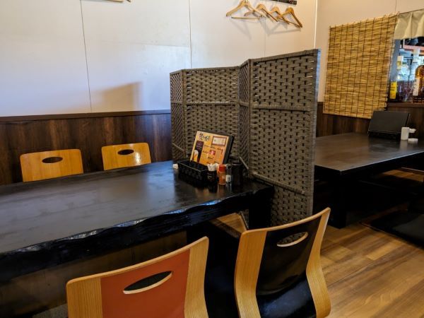 奥はお座敷です。足がラクチンな掘りごたつ式のテーブルなのが、嬉しいですね。