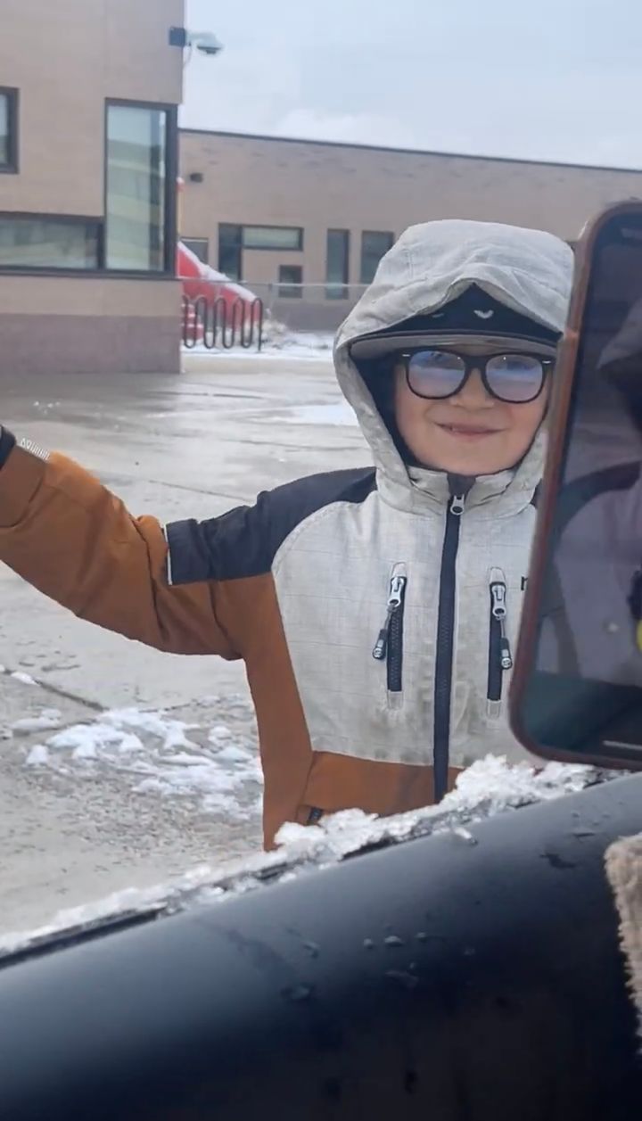 両親から「楽しんでおいで!」と送り出されて登校していった男の子。