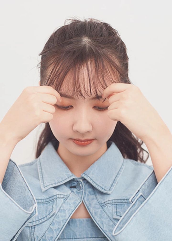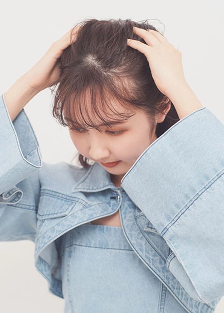 ドライ質感のワックスを少量手にとり、前髪の根元につけてから指先で髪をバラすように動かす。そのあと、毛先をつまんでランダムな束感をつくることで、コンサバっぽくなりがちなのをアプデ。