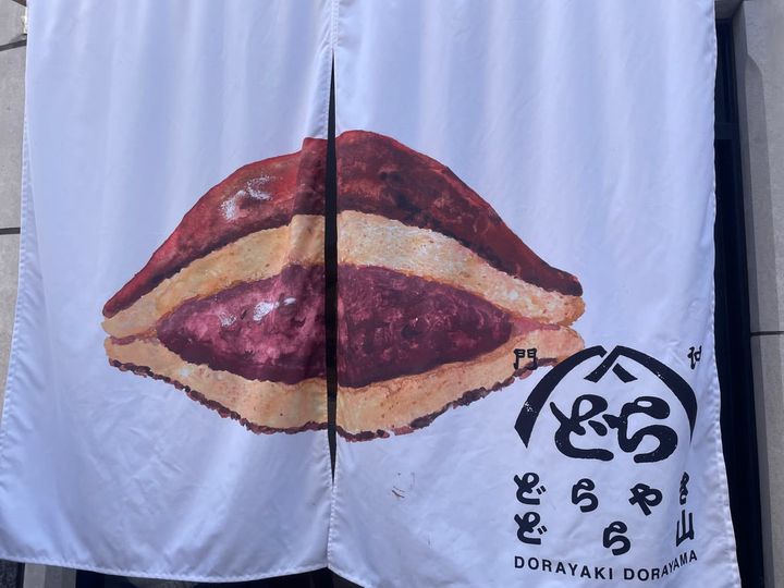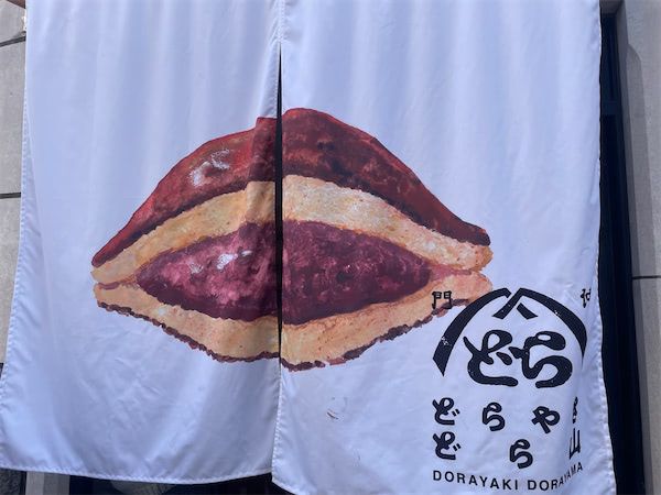 どうです、この「どら焼き欲」を掻き立てるシズル感満載のどら焼き。このイラストが描かれた一際目を惹く大きな暖簾が目印です。