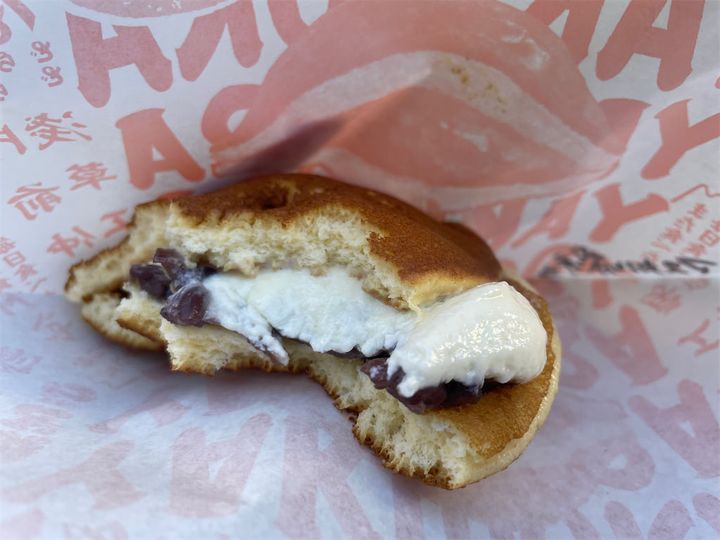 今回筆者は「つぶあん&生クリーム(マスカルポーネ入り)」(450円)を食べましたが、焼き立てどら焼きは他に「つぶあん」と「つぶあん&バター」の三種類。