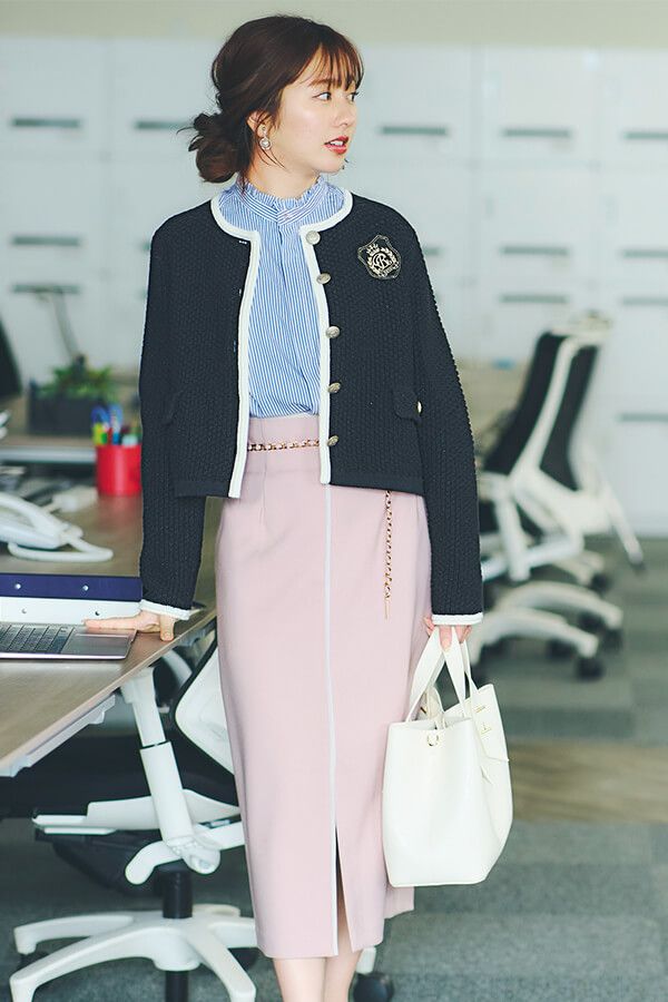 大人のピンクスカート選びの正解は?オフィスで浮かない丈感と色みで知的な印象に