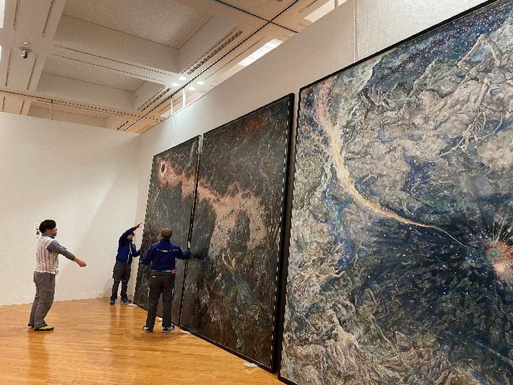最大幅約7.5mの巨大画はどうやって展示する!?まもなく開幕「遠藤彰子展 生生流転」の展示作業に潜入!美術展の裏側を大解剖!②