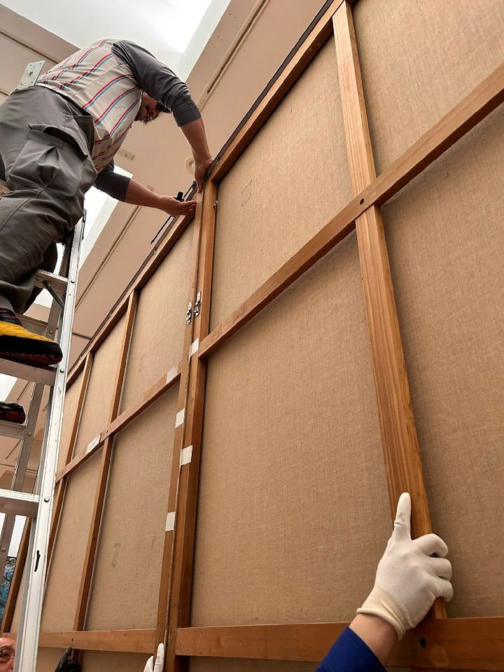 今回の記事では、いよいよ巨大な作品がどのように壁に取り付けられるのかに迫ります!