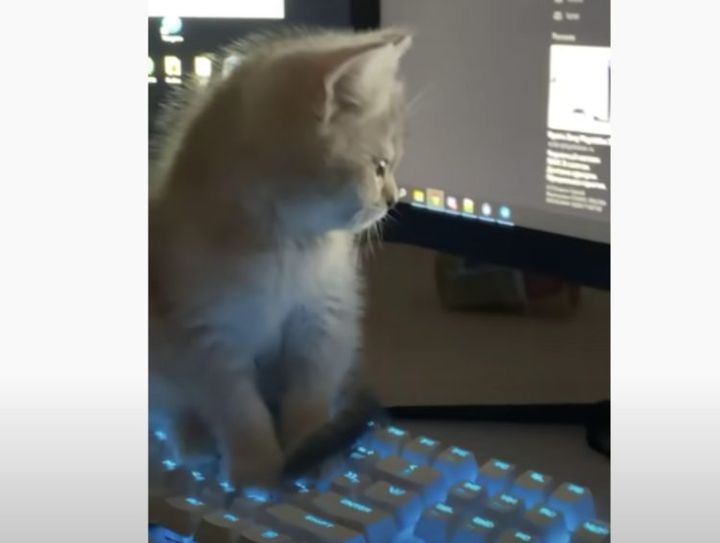 カタカタ キーボードに座って謎の言葉を入力する子猫。