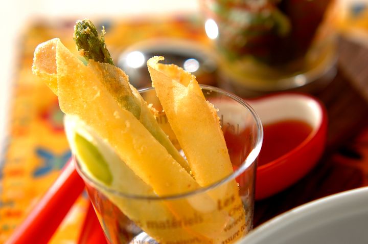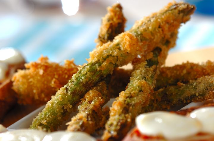 みずみずしいアスパラガスがサクサクのチーズ衣に包まれて美味しさUP。サクサク香ばしい風味がビールともぴったり! もう少しボリュームが欲しい方はベーコンや豚肉を巻くのもおすすめです。