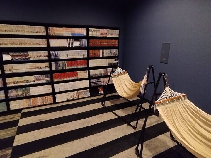 レストスペース「麓Fumoto」では、ハンモックに揺られながら1,500冊のマンガを読めたり……