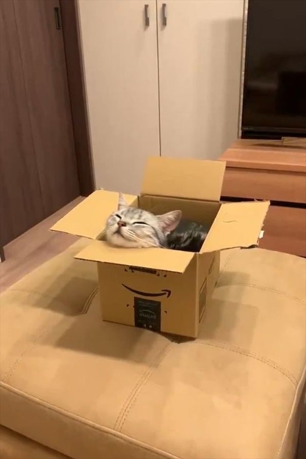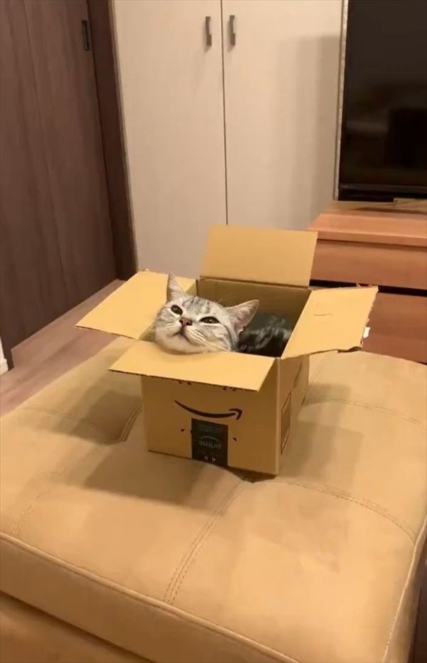 狭い所に入りたがる子も多いネコ。 今回ご紹介する映像には、ダンボールの中に入り込んだかわいすぎるネコの姿が捉えられていますよ!!
