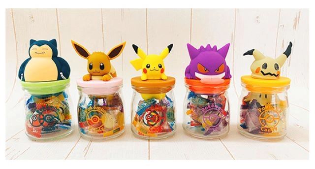 ポケモンが瓶の蓋からひょっこりと飛び出しているようなデザインのキャンディボトル。キャンディの味は全4種類あり、キャンディボトルデザインも、ピカチュウ・ミミッキュ・カビゴン・イーブイ・ゲンガー、全5種のラインナップとなっています。