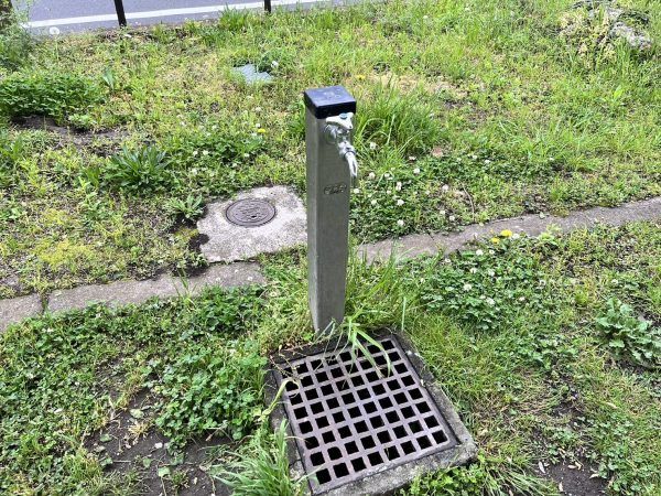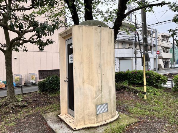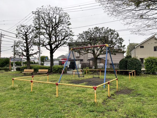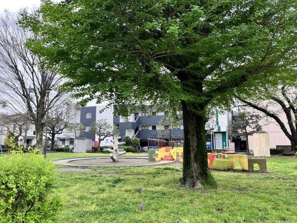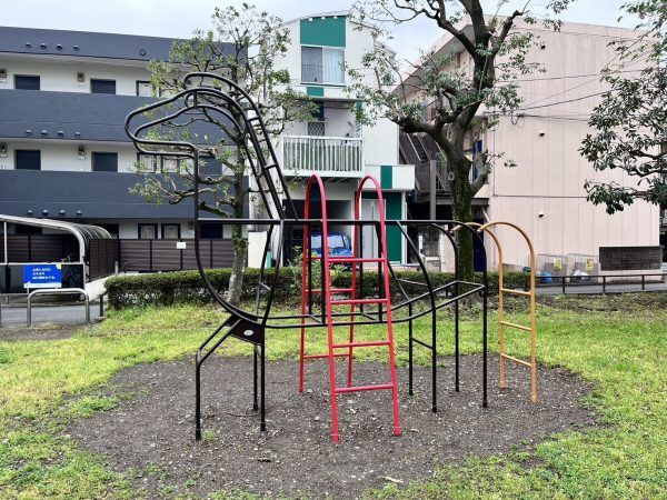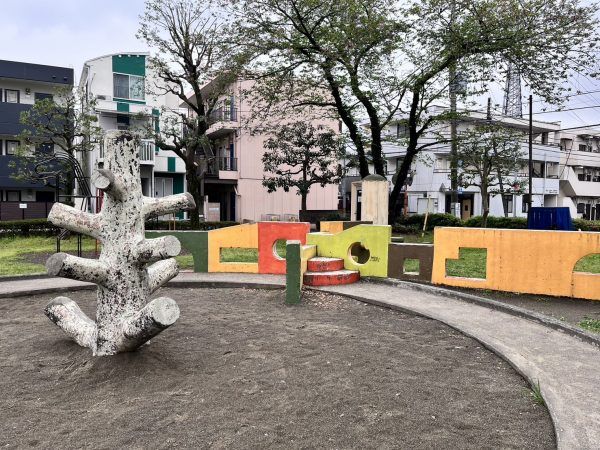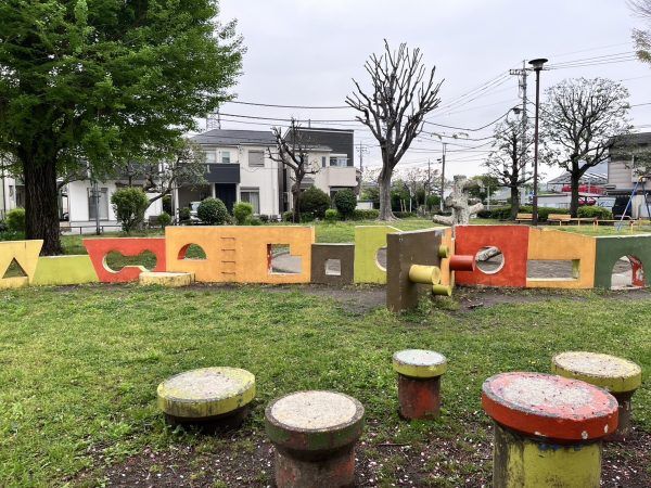 子ども達に人気の、八王子市では時々見かけるコンクリート製の穴がたくさん空いた遊具が併設されています。