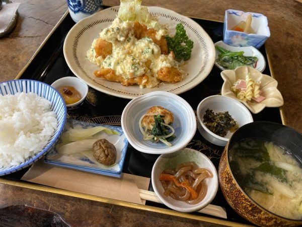 その中から、「オススメ」と記載されていた「チキン南蛮」をお願いしました。運ばれてきたお膳を見てビックリ!メインの「チキン南蛮」以外に小鉢で埋め尽くされています。これは、結構なボリュームです。 実は、注文をする時に、「ご飯を少なめに」とお願いしたのですが、「ご飯が足りなくなるかもしれないよ」と言われた意味が分かりました。