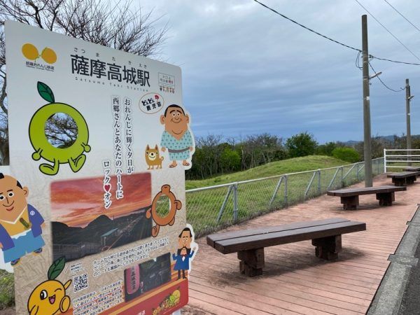 美味し過ぎて完食しちゃったので、少しお散歩することにしました。薩摩高城駅には、顔出しパネルやベンチもありました。