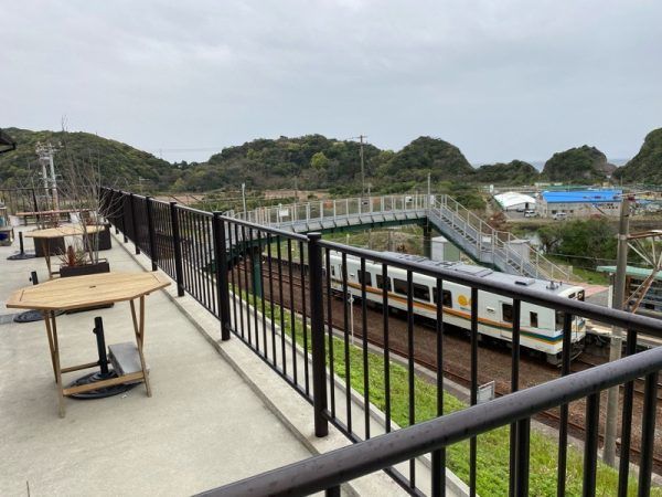 カフェを抜けた先には、テラス席もあり、間近におれんじ鉄道を見ることが出来ます。