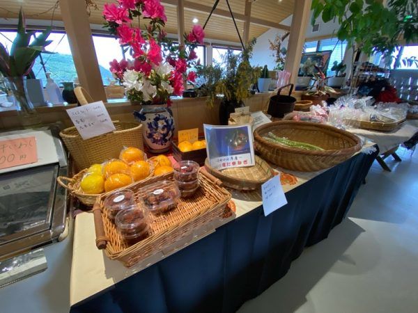 元々は物産館だったということで、入口を入ってすぐは、物販のコーナーです。地元のお野菜などの農作物が並んでいます。