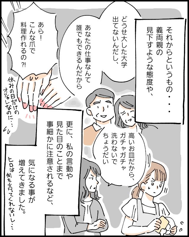 という義両親の見下すような態度や