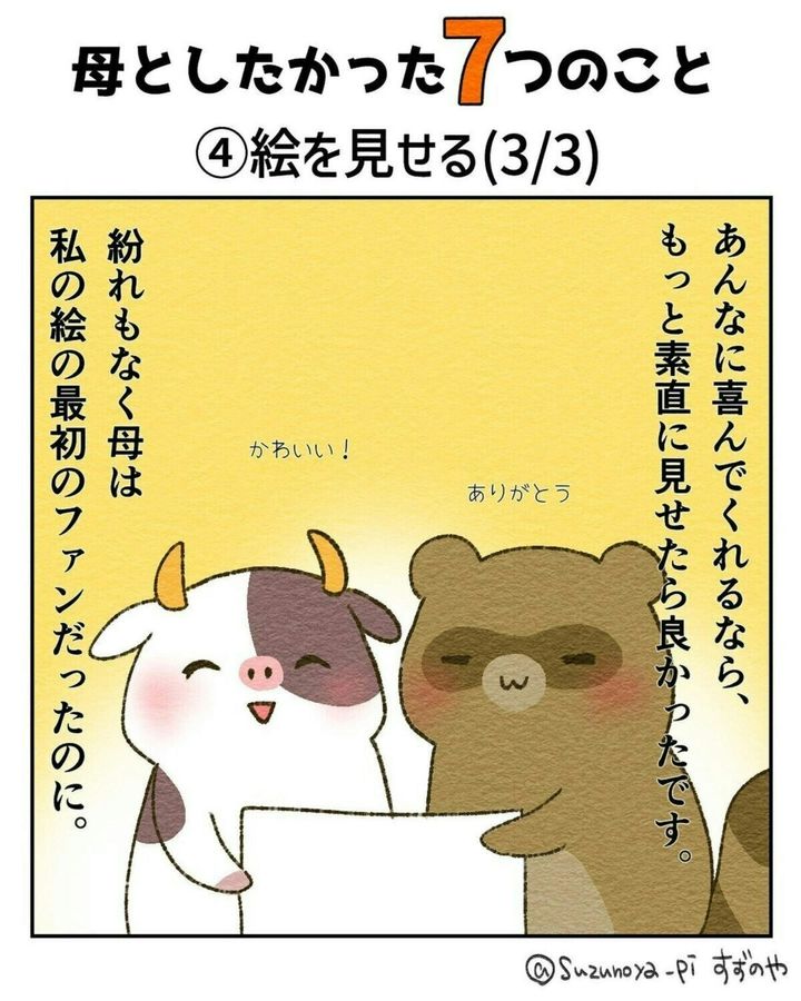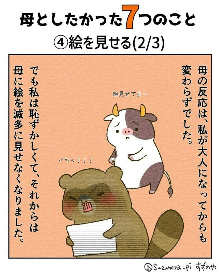 親につらくあたってしまった経験した人もいるでしょう。すずのやさんは昔から絵を描くことが好きでした。しかし、だんだんと母親に見せることが恥ずかしくなったそうです。