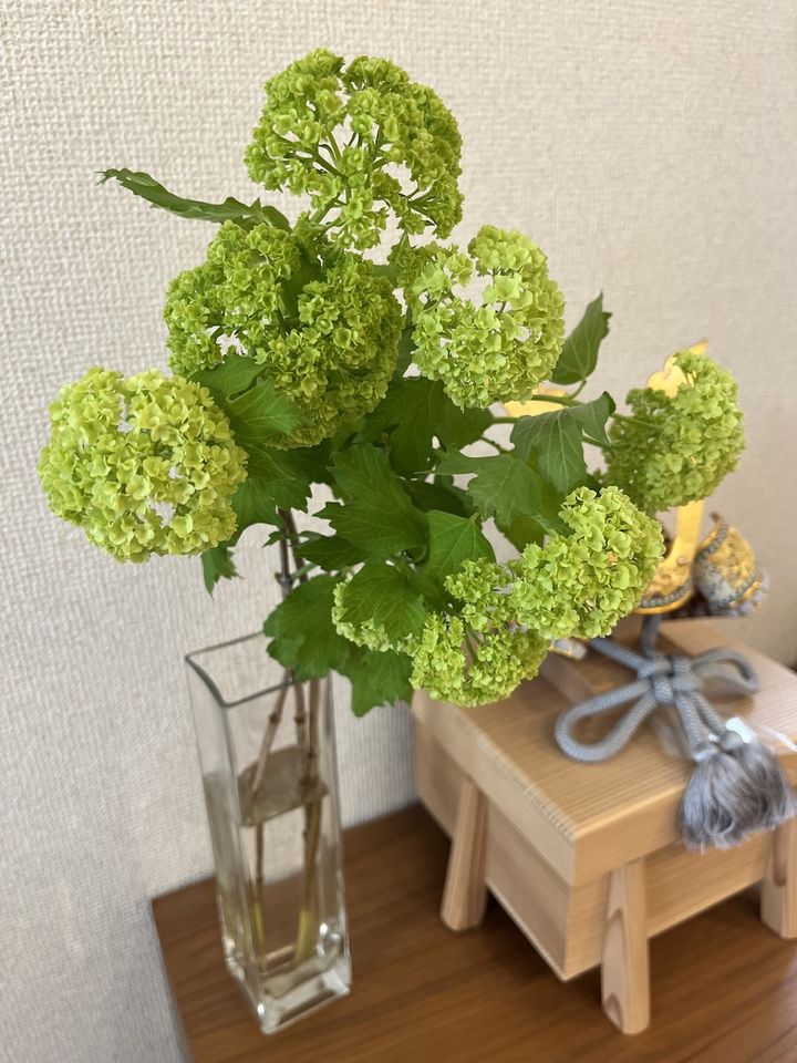 一緒に飾るお花は新緑の季節に合わせて枝物を飾ることが多いです。今年はビバーナムスノーボールにしました。当日には花菖蒲を飾る予定です。