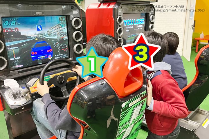 ゲームセンターにあるシューティングゲームや太鼓の達人、レーシングゲーム、電車でGo!などのアーケードゲームもやり放題です。小学生以上が得点を競い合っていたり、一緒にプレイをしたり、全部の台で最高記録を出す!と楽しんでいました。