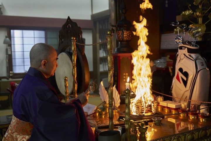 護摩の炎がゴルフ女子の燃える闘志のよう