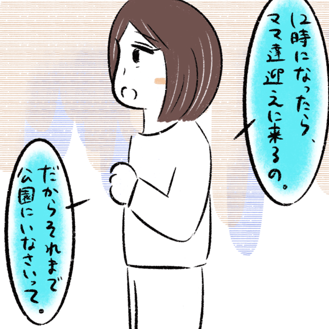「12時になったら、ママ達迎えに来るの。だからそれまで公園にいなさいって」