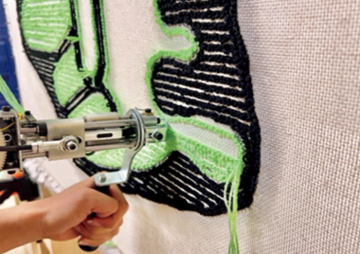 スタッフがサポートしてくれるので、初心者でもオリジナルのラグを作ることができる。併設のショップでは、「MIYOSHI RUG」のポップなラグなども購入できます。