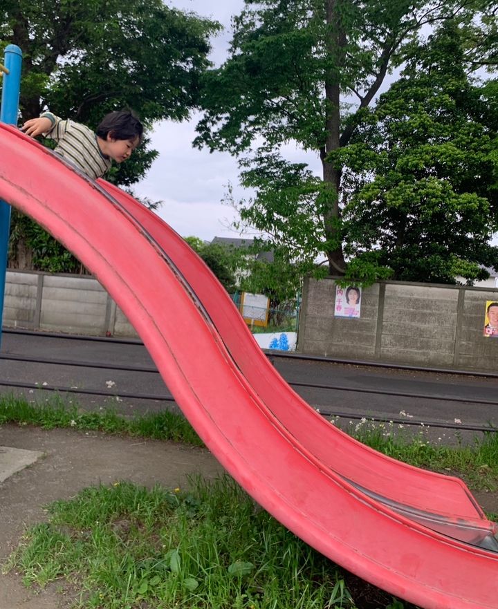なかなか出会わないスリリングな角度の滑り台に、うちの子達は大喜び!!!