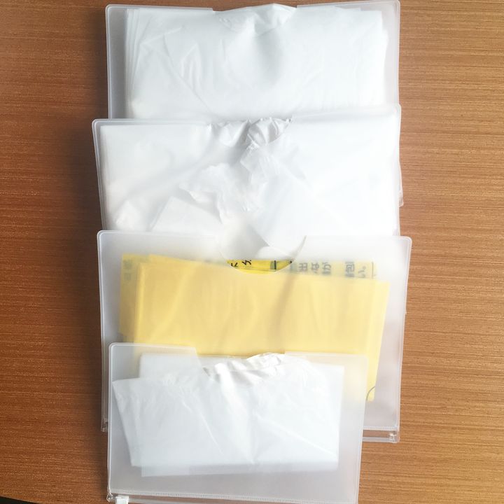 ファスナーがあるため袋の補充も楽にできます。ファイルボックスなどにケースを立てて並べれば、とてもスリムに収納できますよ。
