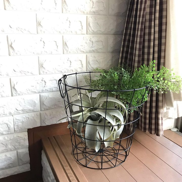 (8)植物を入れてディスプレイするのにぴったり「ワイヤーバスケット(ブラック)」