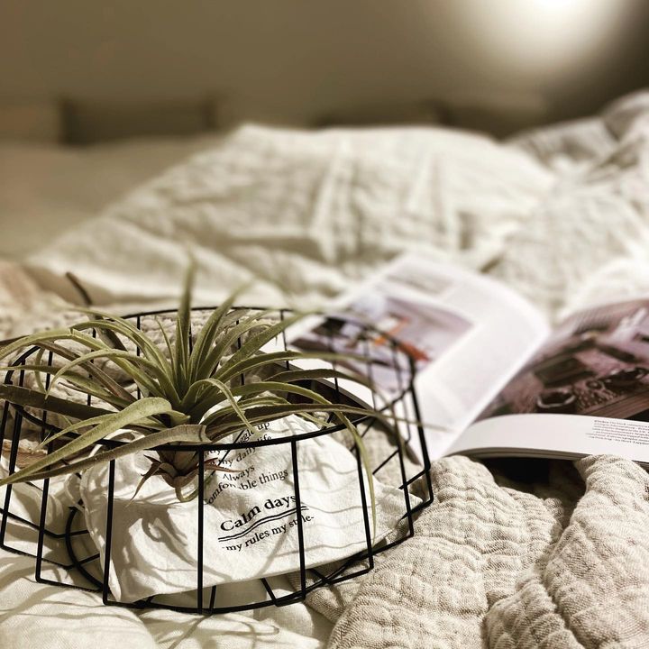 こちらはラウンド型のワイヤーバスケット。ブラックのワイヤー素材は、エアプランツやドライフラワーなど植物と相性がいいので、ディスプレイを楽しむのにぴったりです。