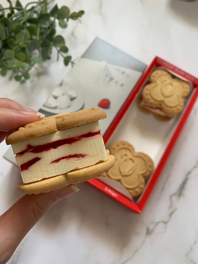 パッケージもバターサンド自体もとっても可愛いです♡ すごく濃厚な味わいで、いちご本来の甘味と酸味をしっかりと感じられる素敵な一品でした。1箱に入っているバターサンドの数は3つ。個数は少なめですが、1つ1つがケーキのようで食べ応えがあります。消費期限が短いので、そこだけ注意です!