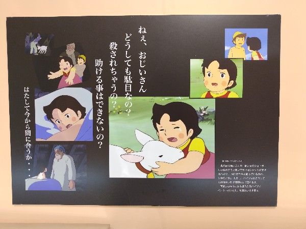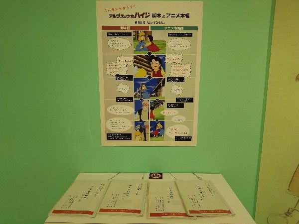 日本のアニメ史上空前の現地取材を行い、本場スイス・アルプスを体感した若き製作陣。 企画→シナリオ→イメージボード→アニメ設定画→絵コンテ→レイアウト→背景画→作画→セル画→テレビ放映のセクション別に会場では紹介されています。作品に注ぎ込んだ強い情熱と、新たに生み出した画期的な技術を当時の貴重な資料が展示されています。