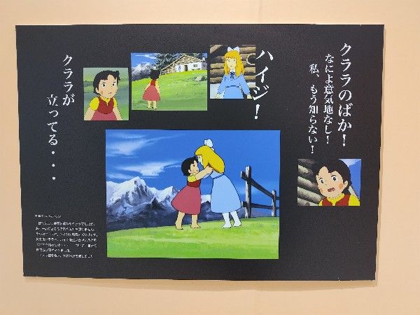「クララが立ってる」など、見る人の心を動かす名セリフの数々を、感動のシーンのパネルにまとまっています。クララが立つシーン、私がハイジだったら、何て声を掛けるかな・・・しばらく考え込んでしまいました。
