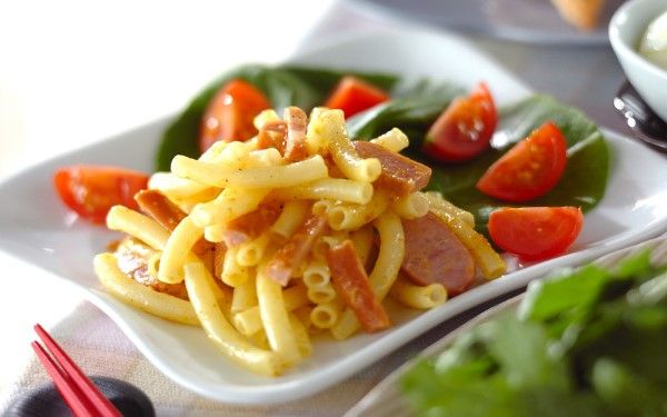 ソーセージ入りのマカロニサラダは子どもが喜ぶ一品。カレー風味で食欲をそそり、パクパク食べてくれそうですね。ソーセージとマカロニを時間差で茹でるので、お鍋ひとつで手軽に作れますよ。お好みで野菜を加えるのもアリです。