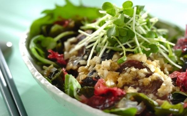 カツオは「勝男」という語呂合わせから、こどもの日の縁起物として人気です。こちらのレシピはカツオのたたきを新玉ドレッシングで和え、海藻サラダと一緒にいただきます。手軽に特別感を演出でき、お祝いの席にもぴったりです。