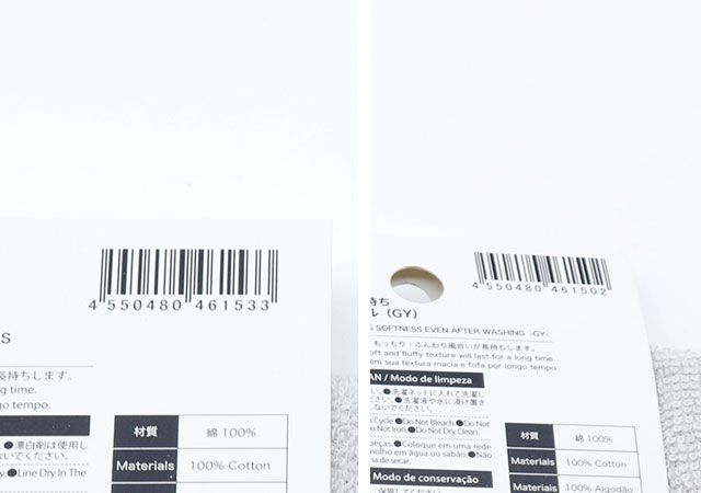 商品名(右):タオルソムリエ監修 洗濯してもふんわり感長持ち こだわりのフェイスタオル(GY)