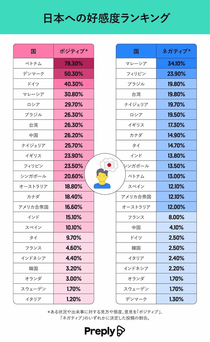 日本に対するネガティブ感情が最も高かったのは、「マレーシア」でした。好感度が最も低い国のトップである一方で、「日本への好感度が高い国」でも4位にランクインしています。