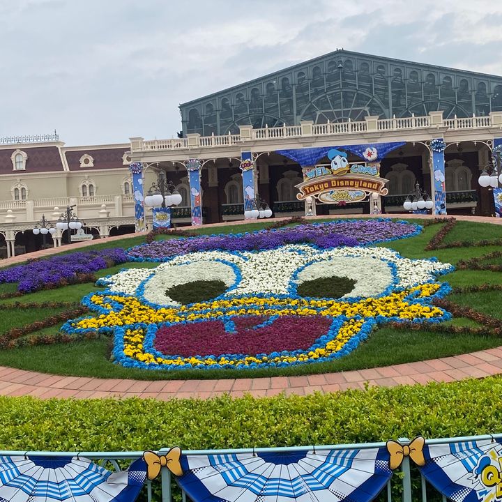 まず見て欲しいのはメインエントランスに飾られる花壇の大きなドナルドです𓅿