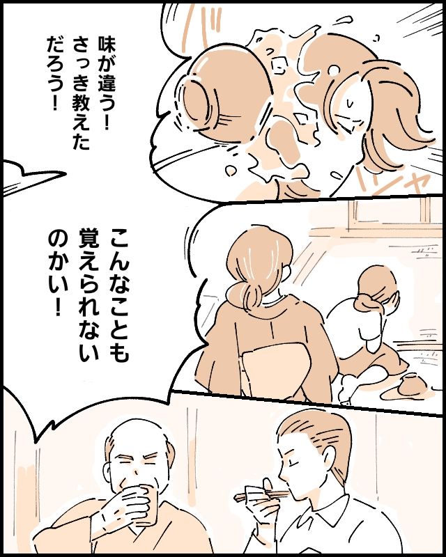 「味が違う!さっき教えただろう!こんなことも覚えられないのかい!」