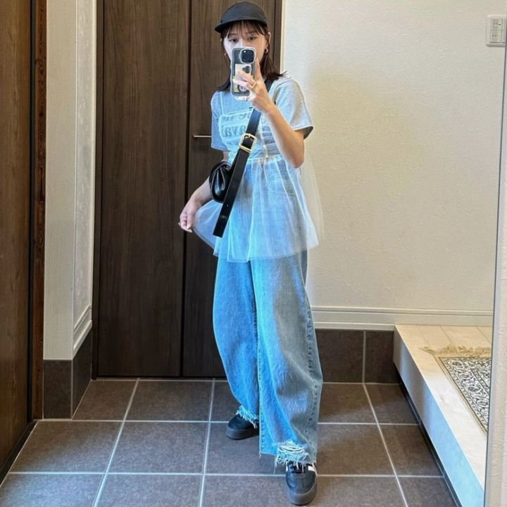 ロゴTシャツに合わせてデニムコーデをガーリーに♡