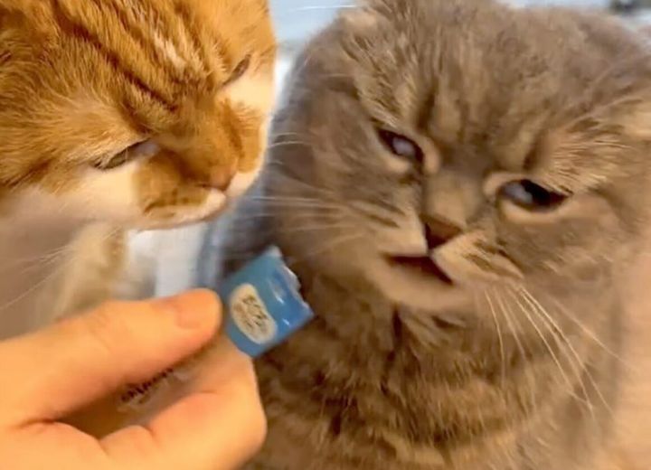 大好きなおやつをもらった猫さん、美味しさのあまり表情が