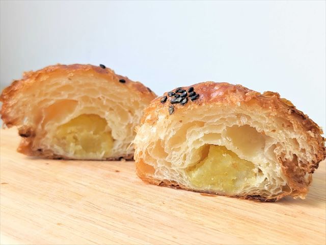 こちらも中にさつまいもが入っています! 食感もしっかり楽しめました。お芋の甘さに、ゴマの香りもしっかり感じられ、スイートポテトを食べているような気分になります。