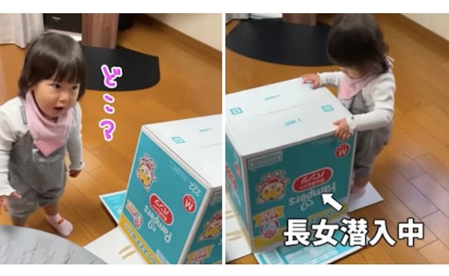 大きな箱の中にいるのは…!?さっきまで一緒にいたはずのお姉ちゃんがいない!?一生懸命お姉ちゃんを探す姿に思わずキュン♡
