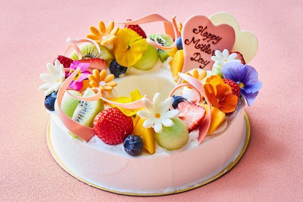 続いてご紹介するのは、『リーガロイヤルホテル東京』にて販売される母の日ケーキ「フルーツブーケ」苺風味のピンク色のスポンジ生地と苺のクリームをベースに、苺やキウイフルーツ、オレンジなどの様々なフルーツと、カーネーションのエディブルフラワーで花束に見立てた可愛らしいケーキです。1日10台限定なので、お早めにチェック!