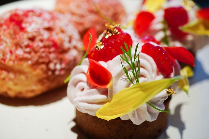 続いてご紹介するのは、『グランド ハイアット 東京』の2種の「フラワーケーキ」です。完全受注で作られる『フィオリーレ』は、薄くスライスしたマンゴーを幾重にも重ね、花びらを表現しているのだとか。『グランド プレミアムフラワーケーキ』は、最高峰とされるタヒチ産バニラビーンズが香るクレームブリュレや、濃厚なジャージー乳の生クリームなどを贅沢に使ったフラワーブーケのような愛らしいケーキです。