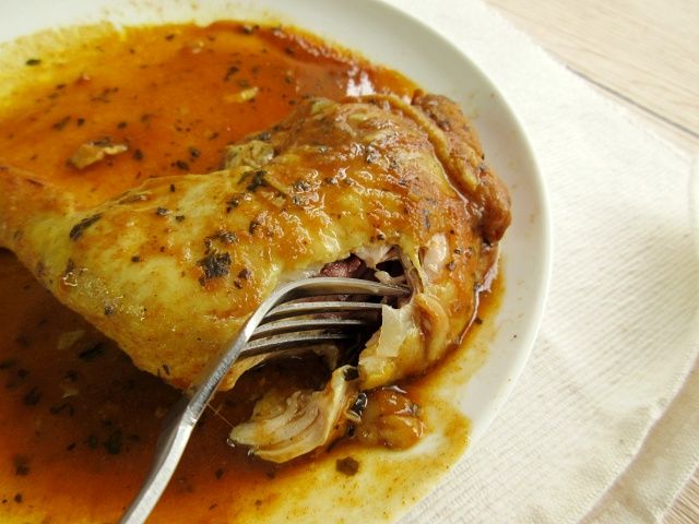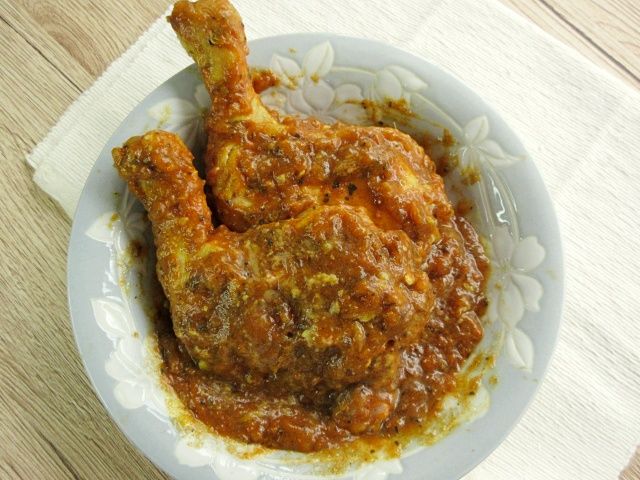 お皿に盛り付けた「スパイシーカレーチキンレッグ」