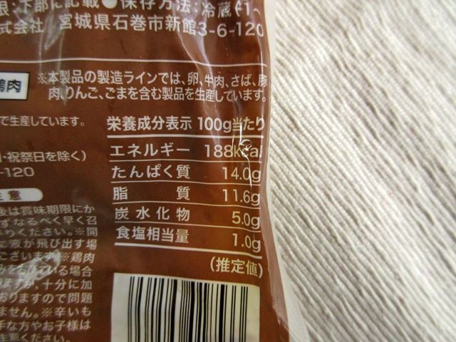 100g当たりのエネルギーは188カロリー。脂質よりもたんぱく質が高めなのが特徴の一つですね。価格は税込338円。一袋2本入りですから、1本当たり169円の計算になります。